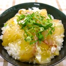 ![]() | 愛媛県南予地方の鯛めし愛媛の中予地方の鯛めしは、鯛を炊き込みますが、南予地方では、お刺身の鯛をそのままご飯にのせて頂きます。あっさりして美味しいですよ。 鯛刺身用 (A)醤油 (A)みりん (A)酒 卵 いりごま ネギ(小口切り) 温かいご飯 |
