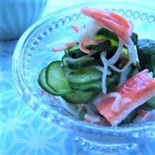 すし酢、馬路ずしの素を使った簡単スピードレシピ。清らかな土佐の清流のようなとてもすがすがしい逸品です。きゅうり1本 塩少々 かにかま(ニッスイ使用)適量 (A)馬路ずしの素大さじ1 (A)砂糖小さじ1/4