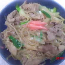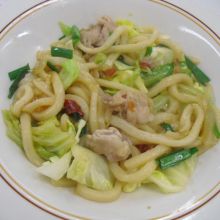 味つけはお好みの焼肉のたれで。ゆでうどん2玉 豚しゃぶしゃぶ用肉120g キャベツ小1/4個 ニラ50g 玉ねぎ小1/2個 サラダ油、酒各大さじ1 焼肉のタレ(醤油味)大さじ4~5 赤唐辛子(みじん切り)好みで少々