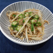 オクラは生のままでも湯がいてもお好みで使ってみてください。オクラ1/2パック 新生姜60g めんつゆ大さじ2 かつお節2・5g