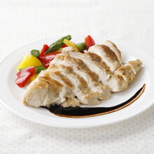 バルサミコ酢を使って黄金比を習得すれば、お肉にもお魚にも使えます。鶏もも肉1枚(400g) 塩こしょう少々 小麦粉大さじ2 (A)バルサミコ酢大さじ3 (A)醤油小さじ1/2 (A)砂糖・みりん各小さじ1 オリーブオイル大さじ1 付け合わせの野菜(パプリカ・アスパラ等)お好みで