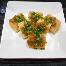 生姜がアクセントです!揚げ(厚めのお揚げ)1枚 (A)ひしお大さじ1 (A)生姜すりおろし小さじ1 青ネギ(小口切り)適量