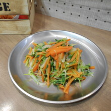 オタフクの塩焼そばのソースで、やきそば以外の料理が簡単にできます。レンジ調理も嬉しいですよね!豆苗1袋 にんじん5cm もやし50g オタフク塩焼そばソース大さじ1~