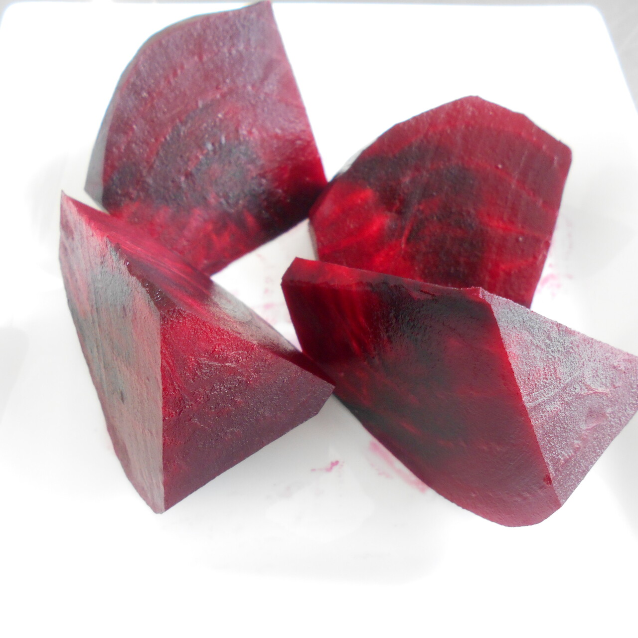 (1)鍋に皮付きのままのビーツ、水、酢を入れ火にかけ、煮立ったら弱火で30~1時間程茹でる。水につけたまま粗熱を取り水気を切る。竹串を刺してすっと刺せればOKです。